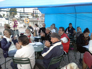 Kisan jatkot vietettiin A-laiturin juhla-alueella, jossa ohjelmassa oli kisan palkintojen jako, ruokailua sekä hyvää musiikkia sindbadilaisten esittämänä.