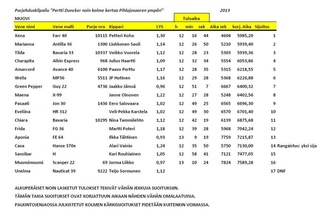 Noin 3 kertaa Pihlajasaaren ympäri kisa purjehdittiin lauantaina 31.8. lyhennetyllä radalla ja mukavassa noin 7 m/s itä-kaakkoistuulessa. Sijoituksista oli kisaamassa 17 venekuntaa, joista nopein oli Petteri Kohon kipparoima Xena 1 h 15 minuutin ajallaan. Viimeinen vene ylitti maalilinjan reilun kahden tunnin ajalla.